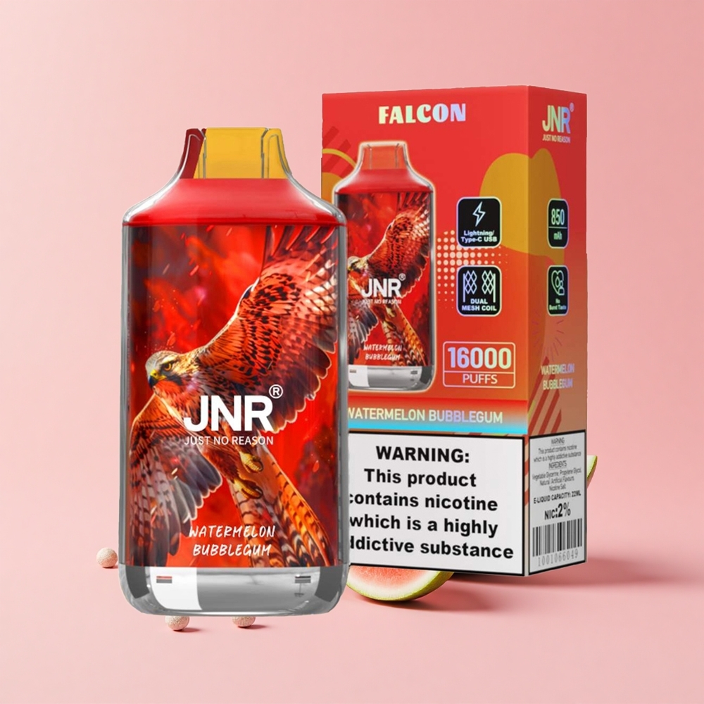 JNR Falcon 16000 Puffs بطيخ علكة 850بطارية مللي أمبير 22ml Dual Mesh Coil Type C LED 0% 2%
