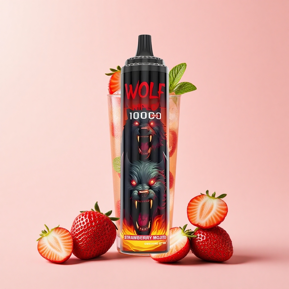JNR Wolf Niplo 10000 Puffs فراولة موخيتو Mesh 1.0Ohm بطارية 650 مللي أمبير النوع-C